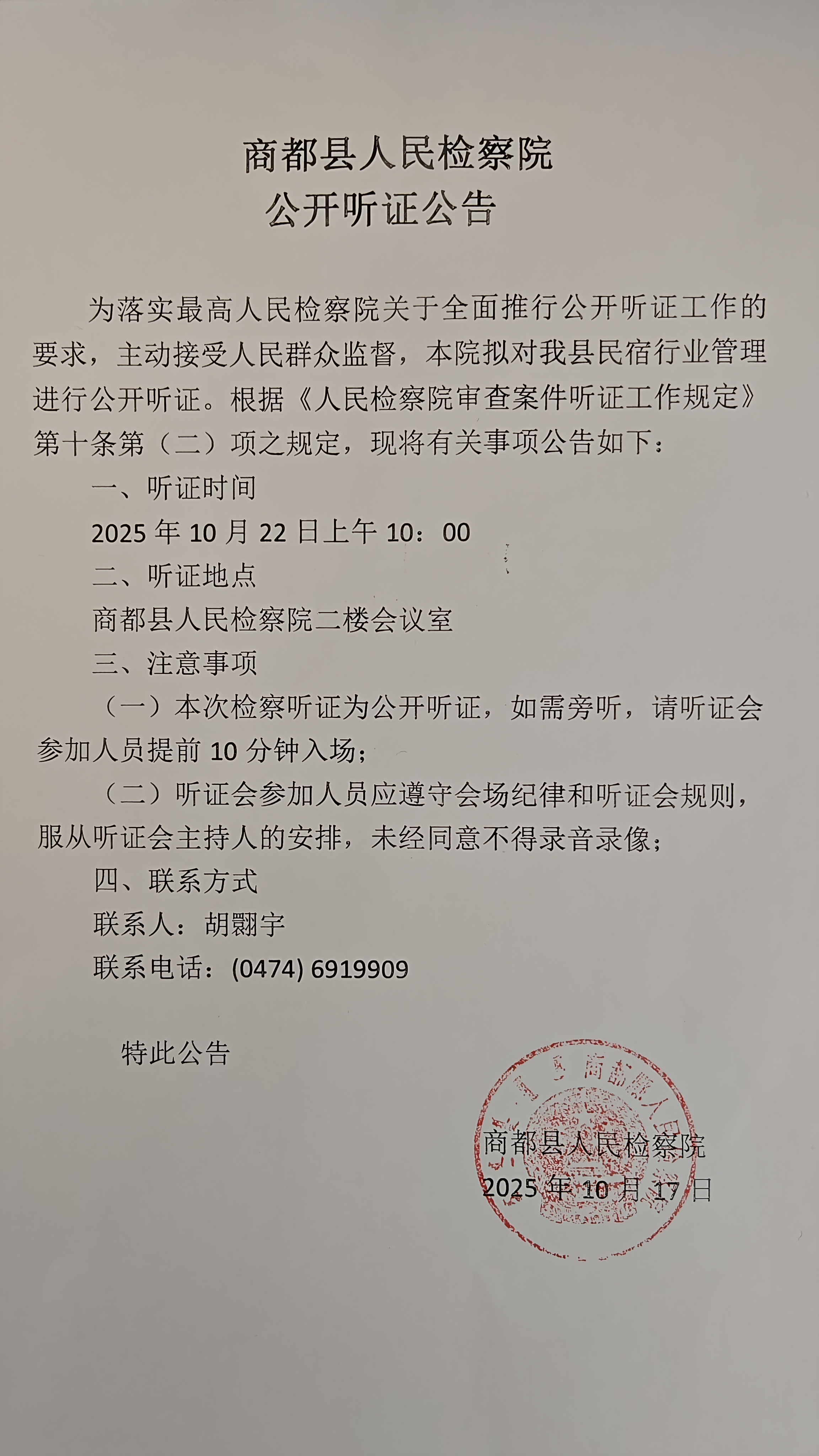 商都县人民检察院公开听证公告